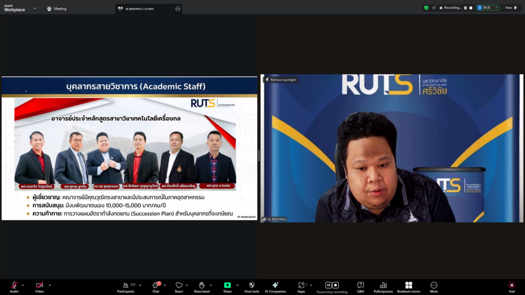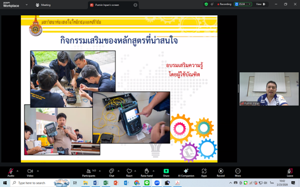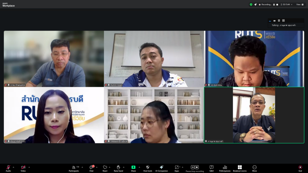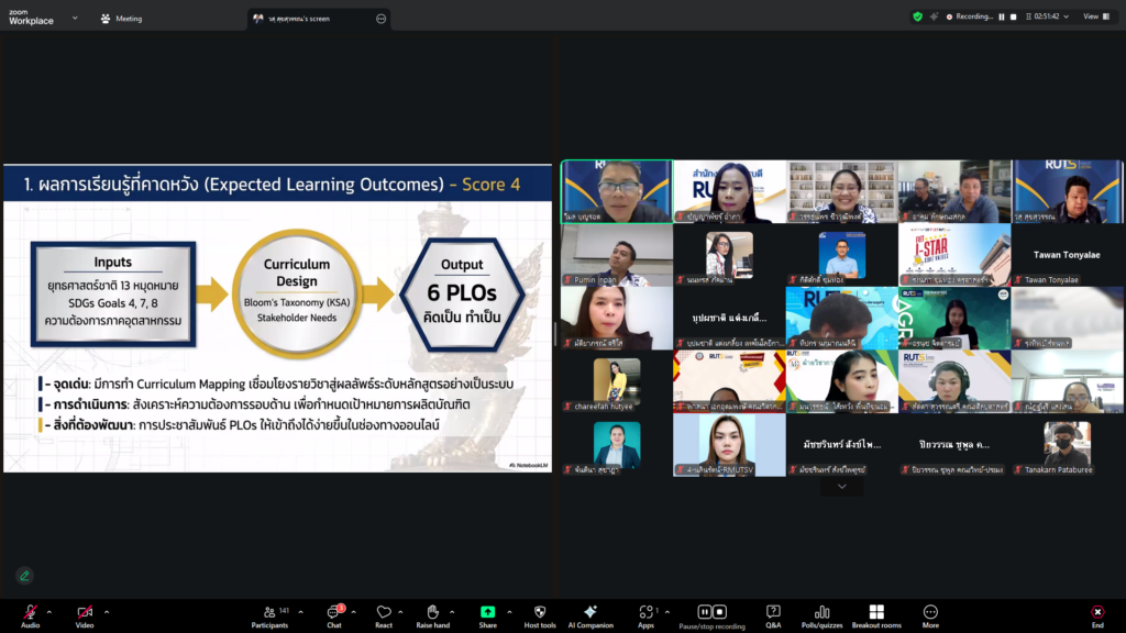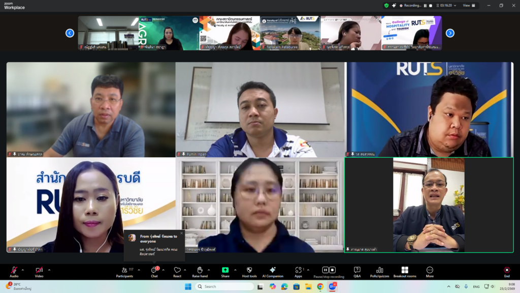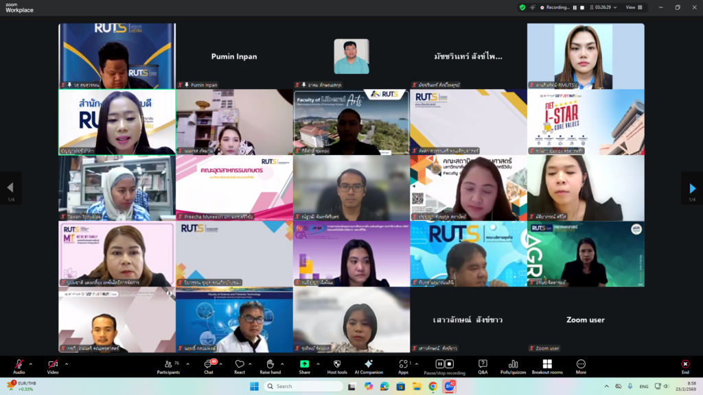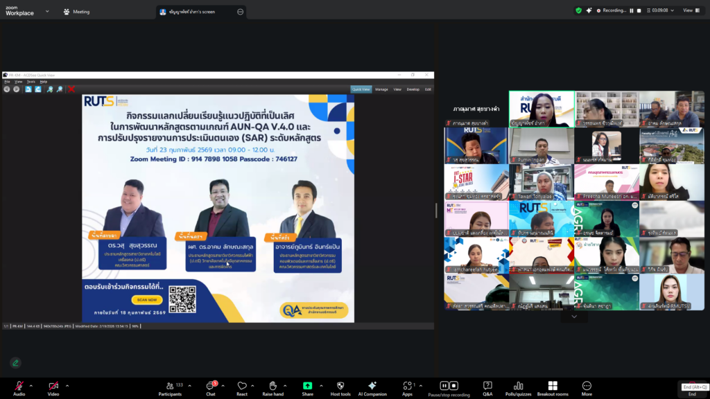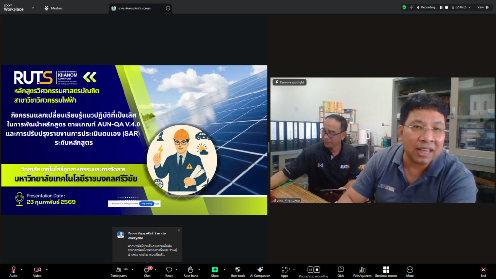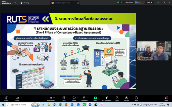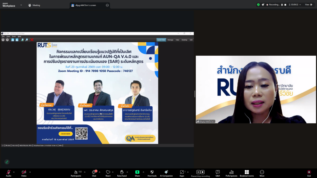 วันที่ 23 กุมภาพันธ์ 2569 งานประกันคุณภาพการศึกษา สำนักงานอธิการบดี จัดกิจกรรมแลกเปลี่ยนเรียนรู้แนวปฏิบัติที่เป็นเลิศในการพัฒนาหลักสูตรตามเกณฑ์ AUN-QA V.4.0 และการปรับปรุงรายงานการประเมินตนเอง (SAR) ระดับหลักสูตร โดยรับเกียรติจากรองอธิการบดี ดร. ภาณุมาศ สุยบางดำ รองอธิการบดี เป็นประธานในพิธี โดยในกิจกรรมมีผู้แทนแต่ละพื้นที่ร่วมนำเสนอผลงานแนวปฏิบัติที่เป็นเลิศในการพัฒนาหลักสูตรตามเกณฑ์ AUN-QA Version 4.0 ภายใต้หัวข้อ การเปลี่ยน “ความคาดหวัง” ให้เป็น “ผลลัพธ์” การจัดการเรียนการสอนที่เน้นผลลัพธ์ ระบบการวัดผลที่สะท้อนสมรรถนะ และวงจรการพัฒนาที่ยั่งยืน จำนวน 3 ท่าน คือ